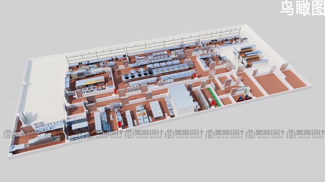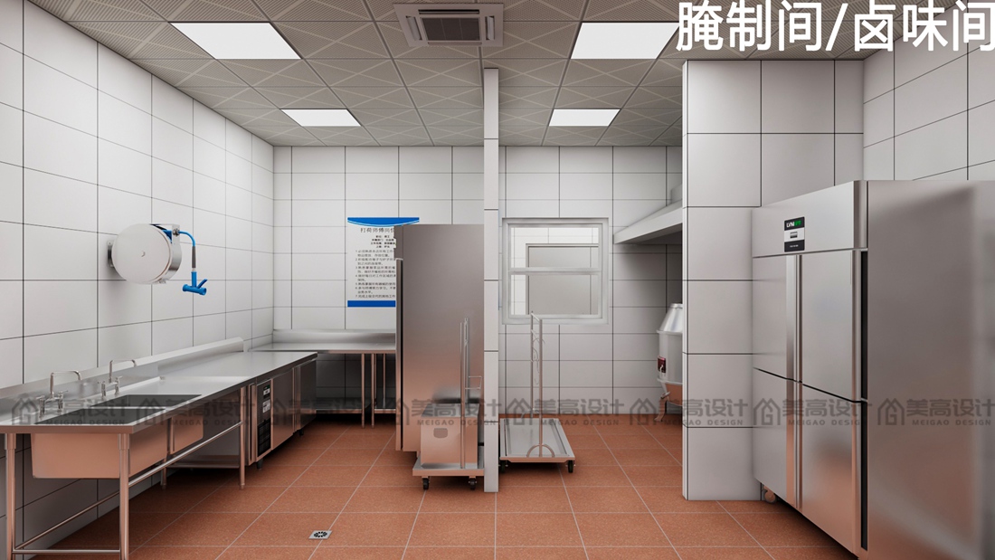 设计说明:在本学校后厨设计设备案例中,美高设计秉持“功能至上,卫生优先”的设计理念,全面规划各个功能区的合理布局。设计涵盖风味档口、副食库、卤味间、面点间、派餐间、两个烹饪区、肉类加工间、蔬菜加工间、两个洗碗间、消毒间、腌制间、鱼类加工间、蒸煮间、主食库等功能区。每个区域科学布局,确保流线顺畅,有效避免交叉污染。设备选用高品质、耐用且符合安全标准的厨房设备,确保操作便利和功能齐全。地板瓷砖选择防滑、耐磨、易清洁的材料,提升安全性和便捷性。灯光设计明亮柔和,营造舒适的工作环境,消毒灯确保卫生标准,维护食品安全。整体设计力求在美观与实用之间达到完美平衡,为工作人员提供高效、卫生的工作环境。