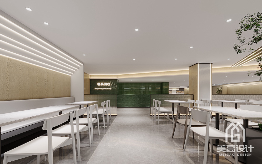 项目介绍:国化广场员工餐厅项目位于广州市白云区,旨在为员工提供一个舒适、现代的就餐环境。整个餐厅面积宽敞,设计风格以简洁现代为主,注重空间的实用性和美观性。在设计中,通过细腻的线条、科技感的取餐区以及温馨的木饰面营造出轻松愉悦的氛围,使员工在繁忙的工作之余,能够享受用餐的舒适与惬意。